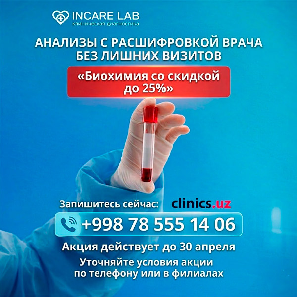 АКЦИЯ! СКИДКА до 25% на биохимический анализ крови в INCARE LAB!