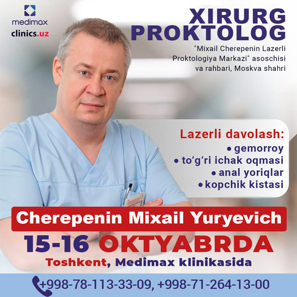 2025 yil 15–16 oktyabr kunlari Buxoro shahrida qabul o‘tkazadi va operatsiyalar amalga oshiradi Mixail Yuryevich Cherepenin — jahon miqyosidagi ekspert.