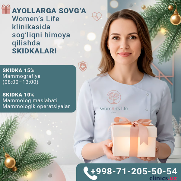 AYOLLARGA SOVG‘A Women’s Life klinikasida sog‘liqni himoya qilishda SKIDKALAR!